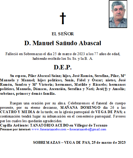 D. Manuel Sañudo Abascal – Sobremazas – Vega de Pas en 25 marzo, 2023 por funerariaacebo Comparte esto: Haz clic para compartir en X (Se abre en una ventana nueva) X Haz clic para compartir en Facebook (Se abre en una ventana nueva) Facebook Me gusta Cargando... Relacionado