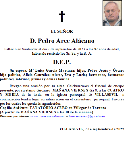 D. Pedro Arce Alácano- Villasevil en 7 septiembre, 20237 septiembre, 2023 por funerariaacebo Comparte esto: Haz clic para compartir en X (Se abre en una ventana nueva) X Haz clic para compartir en Facebook (Se abre en una ventana nueva) Facebook Me gusta Cargando... Relacionado