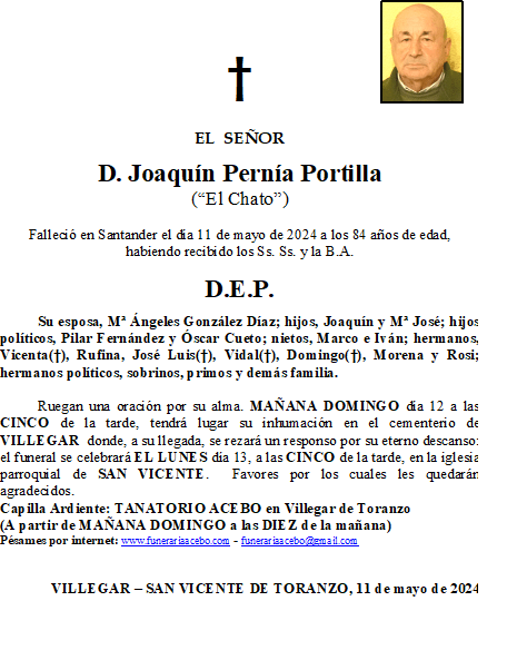 Un comentario en “D. Joaquín Pernía Portilla- Villegar- San Vicente de Toranzo”