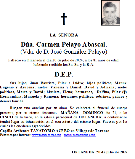 Sentimos mucho el fallecimiento de mi amiga Carmen. Nuestro más sentido pésame para toda la. Un fuerte abrazo. M. Carmen Morante y familia Me gustaMe gusta 21 julio, 2024 a las 12:29 pm Responder