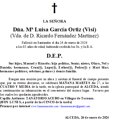 Dña. Mª Luisa García Ortiz (Visi)- Alceda en 26 enero, 202626 enero, 2026 por funerariaaceboDeja un comentario