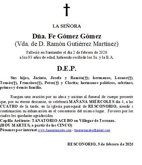 Dña. Mª Gloria Ruiz Arroyo- San Pedro del Romeral en 11 febrero, 2026 por funerariaaceboDeja un comentario