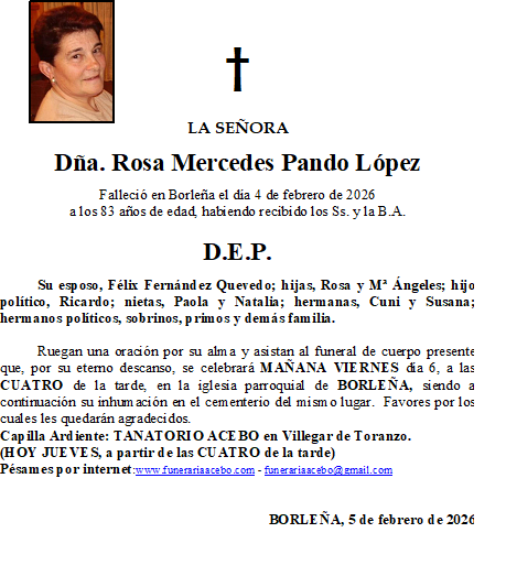 Dña. Rosa Mercedes Pando López- Borleña en 5 febrero, 20265 febrero, 2026 por funerariaaceboDeja un comentario