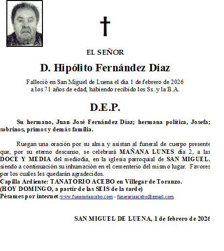 D. Hipólito Fernández Díaz- San Miguel de Luena en 1 febrero, 2026 por funerariaaceboDeja un comentario