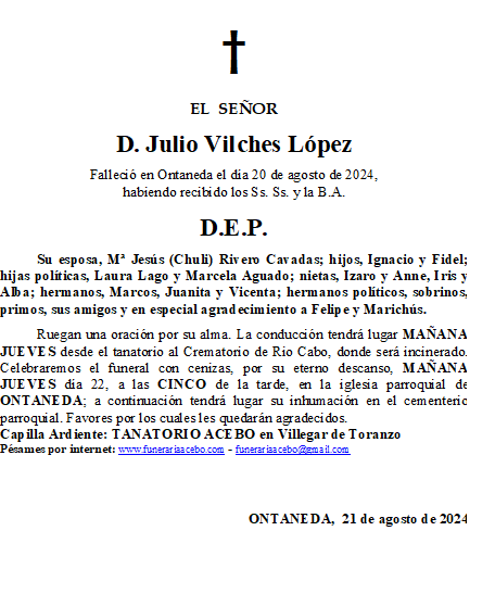 D. Felipe Ruiz Ibáñez – San Vicente de Toranzo- Ontaneda en 27 agosto, 2024 por funerariaaceboDeja un comentario