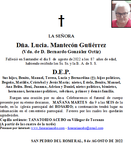 Dña. Mª Luisa Arenal Sastrías- Escobedo de Villafufre en 25 julio, 2022 por funerariaaceboDeja un comentario