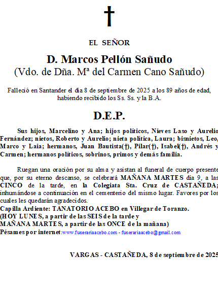 D. Marcos Pellón Sañudo – Vargas – Castañeda en 8 septiembre, 2025 por funerariaaceboDeja un comentario