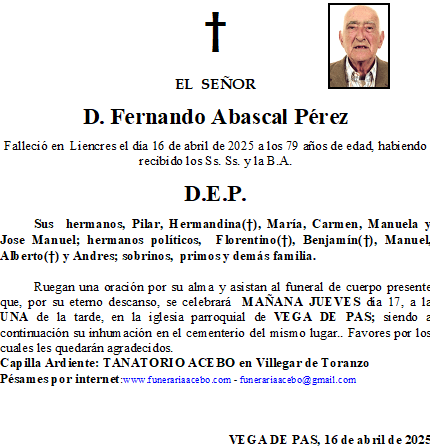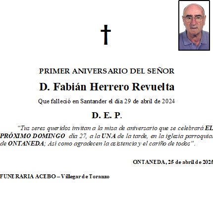 Primer Aniversario- D. Fabián Herrero Revuelta- Ontaneda en 25 abril, 2025 por funerariaaceboDeja un comentario