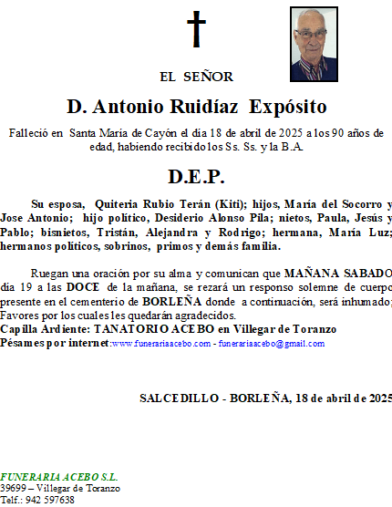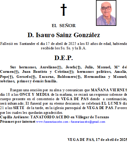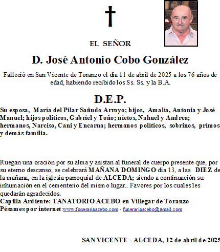D. Jose Antonio Cobo Gonzalez. San Vicente – Alceda. en 12 abril, 2025 por funerariaacebo1 comentario